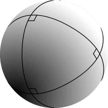 - Ejemplo: Un triángulo entre el Ecuador, un meridiano y otro meridiano a 90°.