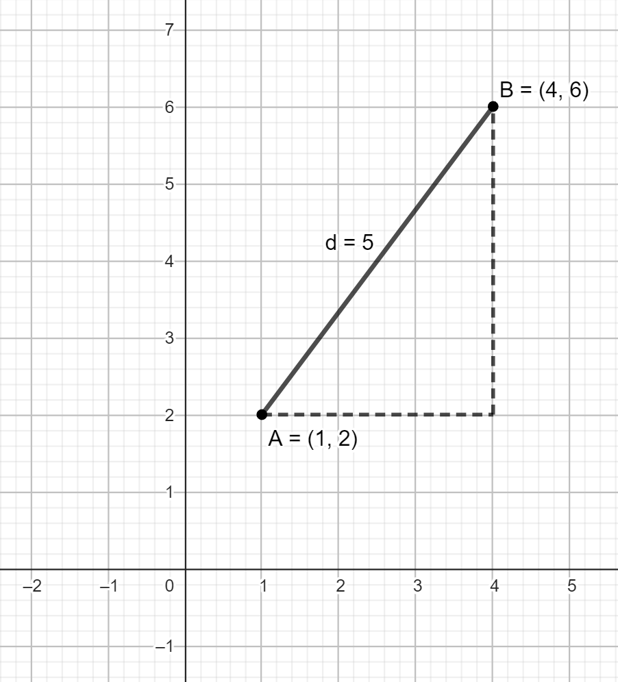 - Calcula la distancia entre (0, 0) y (3, 4).